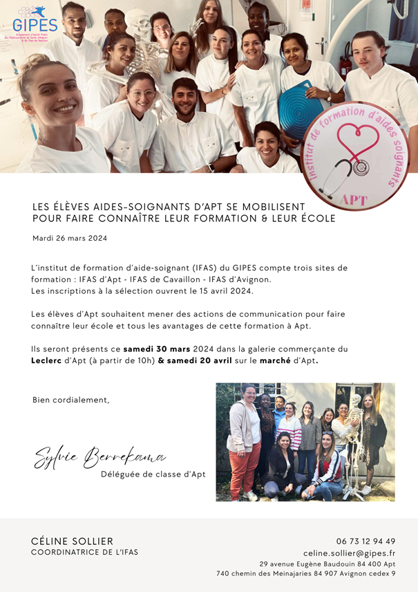 Les élèves aides-soignant(e)s d’Apt se mobilisent pour faire connaître leur institut de formation.