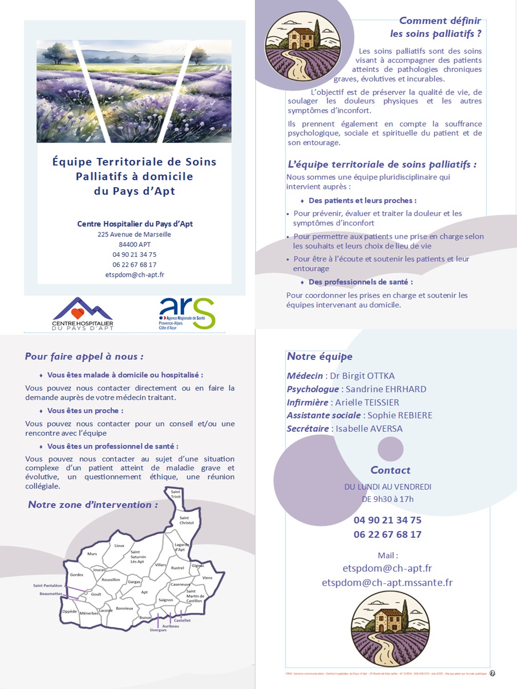 Accueil  |  L'offre de soins  |  Equipe Territoriale de Soins Palliatifs à domicile du Pays d'Apt