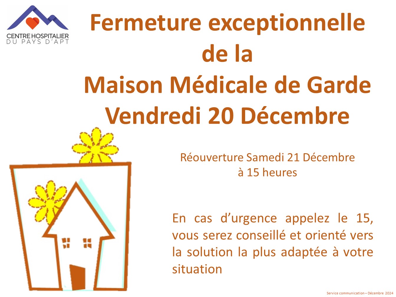 Fermeture exceptionnelle de la Maison Médicale de Garde